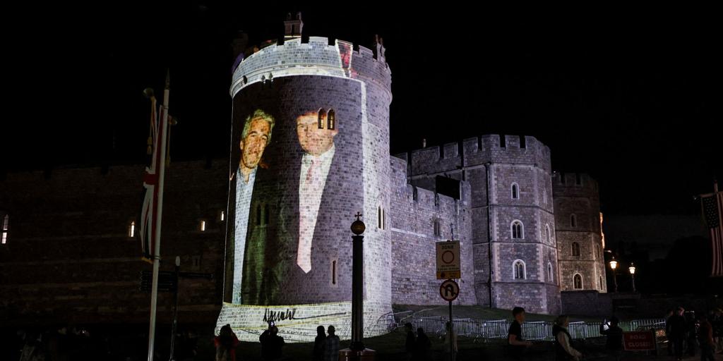 El nombre del magnate, fallecido en prisión en 2019 mientras esperaba juicio por tráfico sexual de menores, vuelve a proyectarse, esta vez literalmente, sobre los muros del castillo. Y es que el martes por la noche, tras la llegada de Trump al país, un grupo de activistas proyectó imágenes en una de sus torres del presidente junto a Epstein, recortes de prensa sobre el caso y una supuesta carta de felicitación firmada por Trump, una protesta que se saldó con la detención de cuatro personas y que recordó que el pasado de Trump con Epstein, aunque nunca derivó en acusaciones formales contra el presidente, sigue siendo un asunto de escrutinio público.
