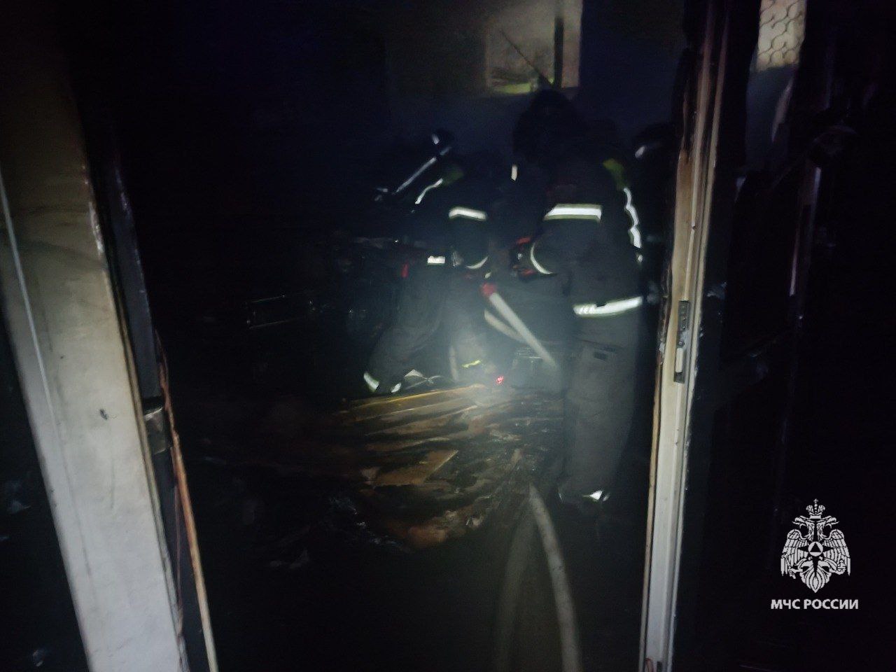 Происшествие случилось ночью 22 декабря в доме на двух хозяев. Общая площадь пожара составила 120 квадратных метров. Огонь тушили десять человек и три пожарных расчёта.