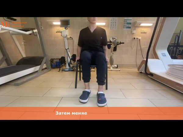 Сидя на стуле, поставьте правую ногу на носок, левую — на пятку. На счет раз — поменяйте ноги местами, на счет два поменяйте обратно. Так повторите 8-10 раз.