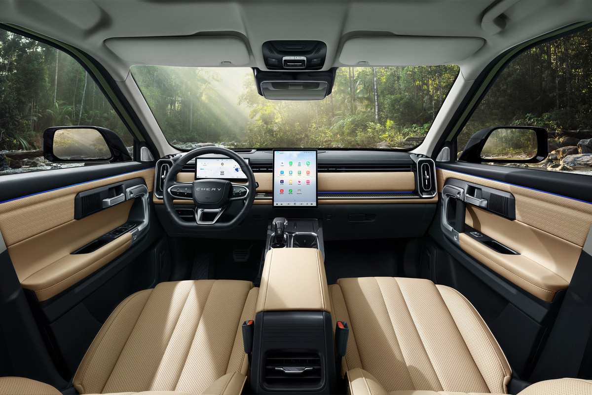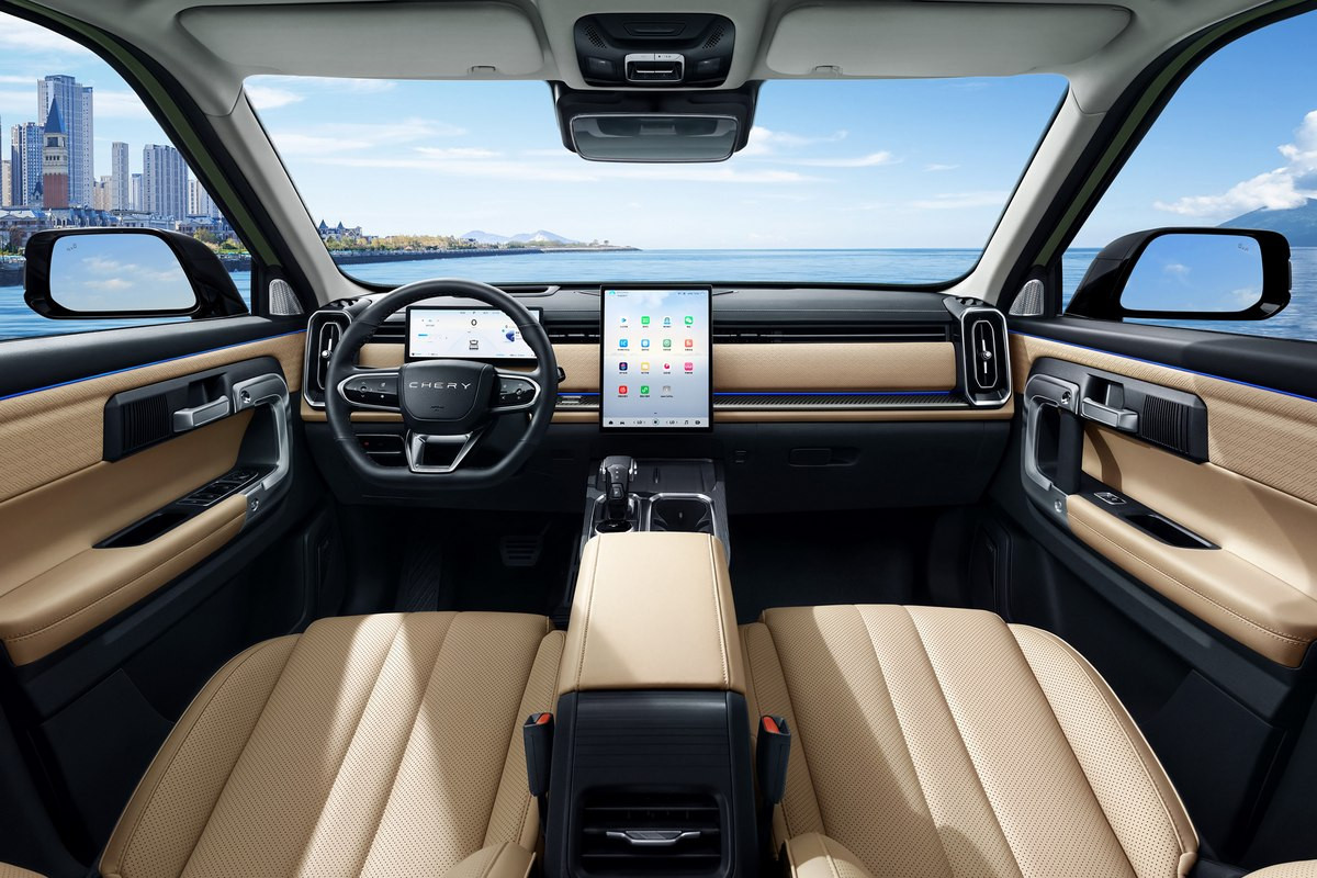 Внутри все версии в целом повторяют друг друга, в салоне установлены виртуальная приборка и мультимедиа-система с крупным вертикальным планшетом. Для Chery Explore 06/Jaecoo J7 также предусмотрены проекционный дисплей, камеры кругового обзора, адаптивный круиз-контроль, системы автоторможения и удержания в полосе движения.