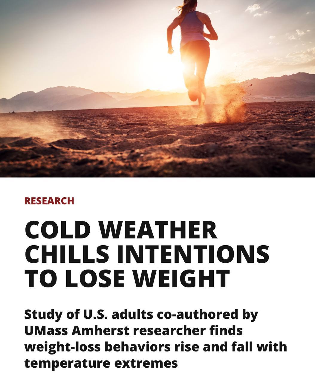 Исследование показало, что при температуре ниже +20°C люди менее склонны к похудению. В прохладные дни реже соблюдают диеты, меньше занимаются спортом и чаще отказываются от здорового питания.