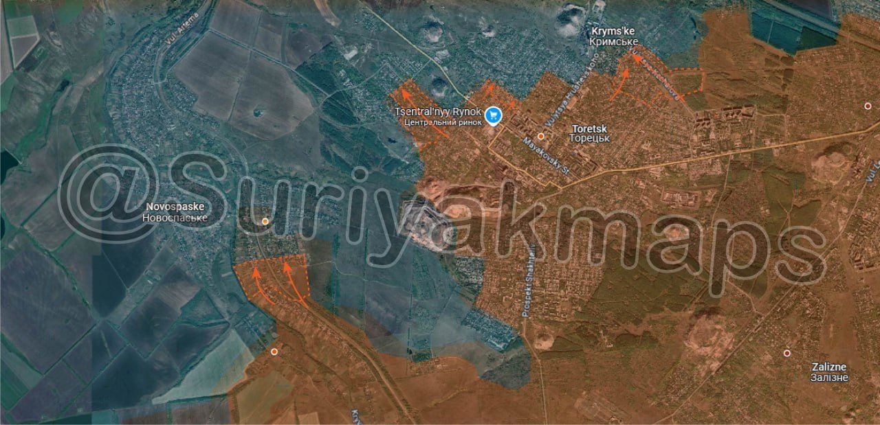 Российская армия продолжает продвижение в Торецке. БОльшая часть города контролируется нашими бойцами. Кроме того, ведутся успешные наступательные действия в Щербиновке.