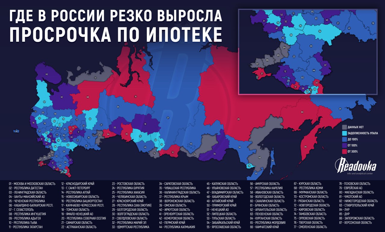 Карта Readovka с задолженностью по субъектам РФ в хорошем разрешении — по ссылке.