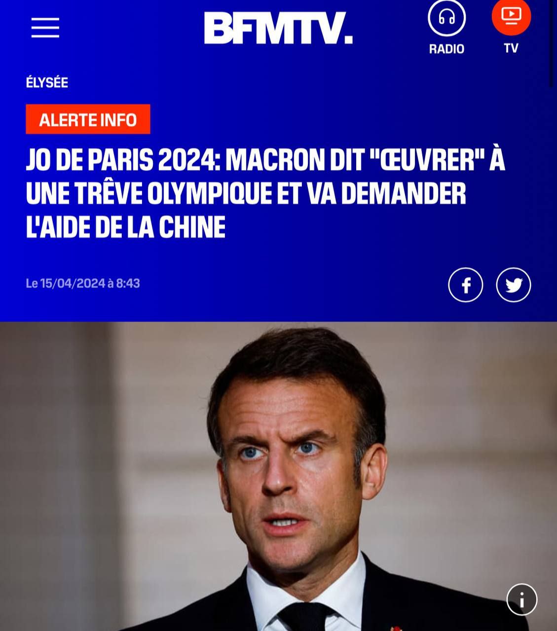 ⚡️Макрон хочет объявить перемирие в Украине с 26 июля по 11 августа, — BFMTV.