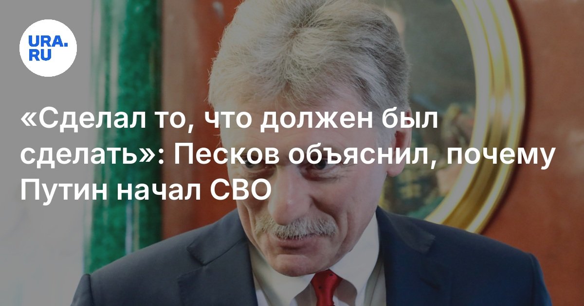 Российский лидер Владимир Путин объявил о начале специальной военной операции из-за угрозы нацизма, который, несмотря на победу СССР во Второй мировой войне, сохранился и укоренился на территории современной Украины. Об этом сообщил его пресс-секретарь Дмитрий Песков. Он отметил, что Путин сделал то, что должен был сделать.