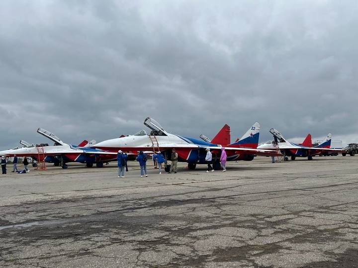 К самолетам пилотажной группы "Стрижи" приехали на экскурсии школьники