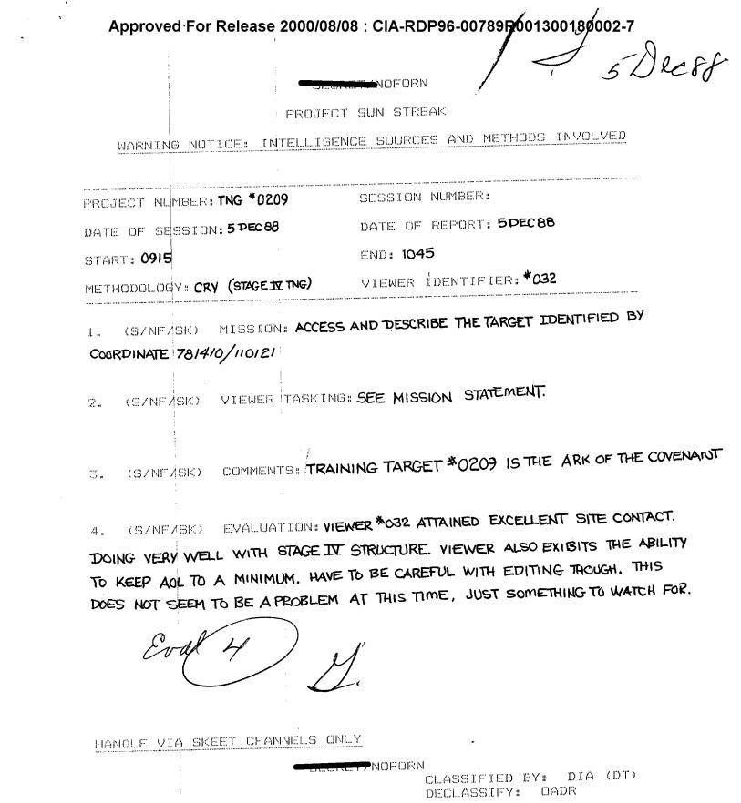 ▪️Рассекреченный документ под номером CIA-RDP96-00789R001300180002-7 относится к проекту SUN STREAK – программе по дистанционному просмотру, в рамках которой исследовали возможности парапсихологии в разведке.