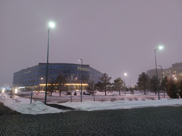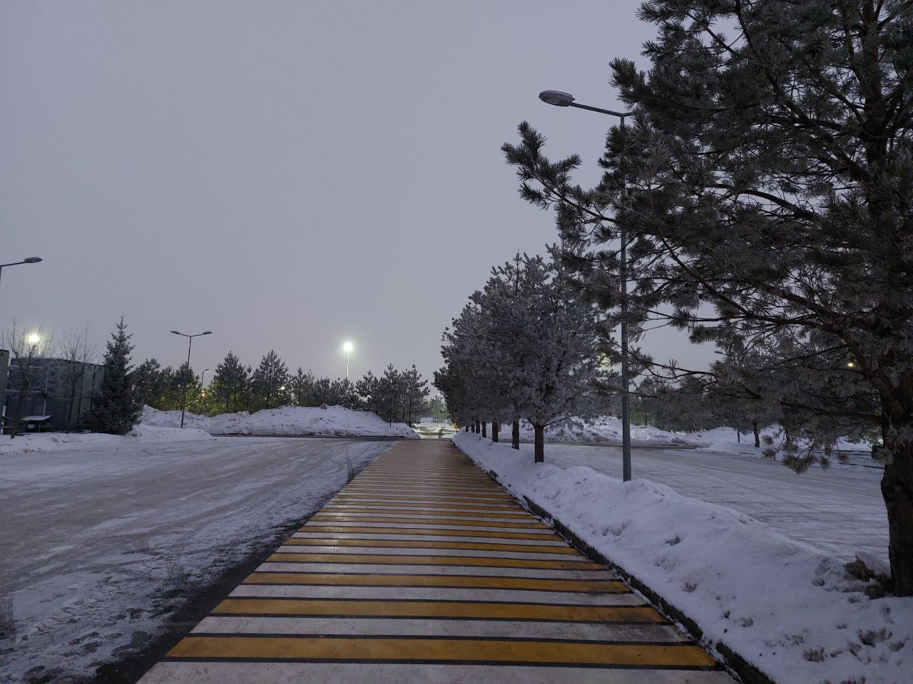 Первая мысль после приезда, которая нас посетила: мы что попали в «Бегущего в лабиринте»? Конец света наступил? Людей не видно, транспорта почти нет, везде бетонно-стеклянные здания, а отсутствие солнца заставляет город выглядеть совершенно оторванным от мира. Когда мы пошли бродить по городу, и мимо нас начали проезжать роботы-доставщики ощущение, изменилось: мы не в антиутопии, а в городе будущего.