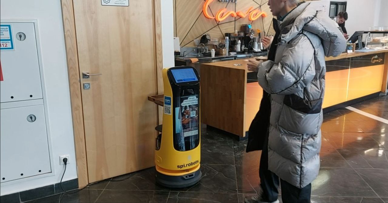 Фото: 1) робот-кошка-официант Белла 2) робот-официант Миньон 3) роботы-доставщики