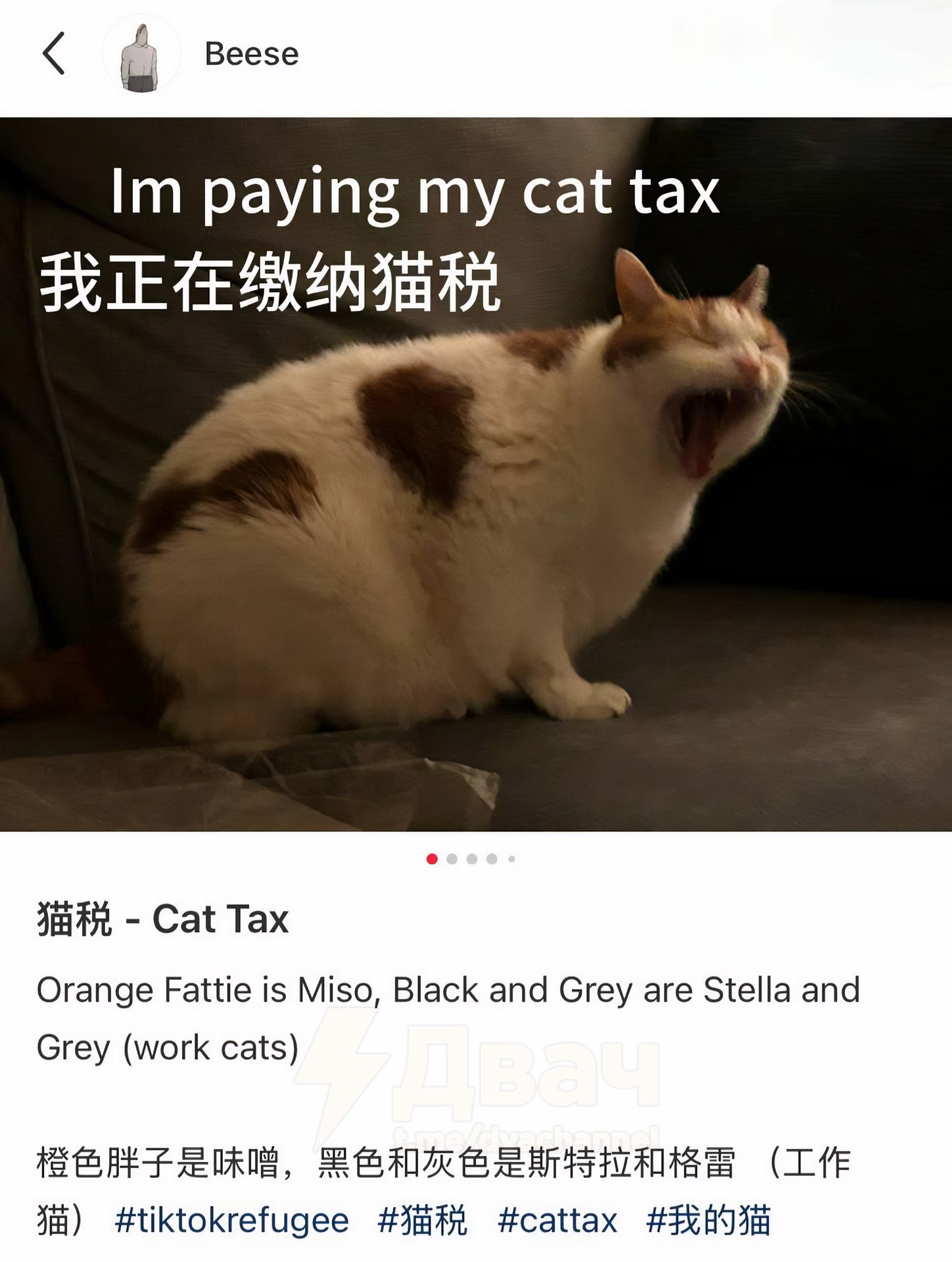 ➖Китайские пользователи сначала растерялись, а потом начали веселиться: они просят американцев помочь с английским и требуют «кошачий налог» – чтобы новички стали частью сообщества, нужно выкладывать фото своих котов. Даже мэр одного итальянского городка попал под этот «налог»;