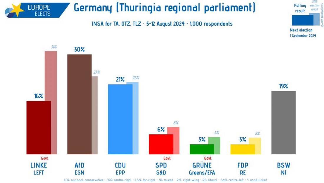 π ΠΠ° Π΄Π²Π΅ Π½Π΅Π΄Π΅Π»ΠΈ Π΄ΠΎ Π²ΡΠ±ΠΎΡΠΎΠ² Π² Π»Π°Π½Π΄ΡΠ°Π³ Π’ΡΡΠΈΠ½Π³ΠΈΠΈ, ΡΡΠΈ ΠΏΠ°ΡΡΠΈΠΈ ΠΏΡΠ°Π²ΡΡΠ΅ΠΉ Π² ΠΠ΅ΡΠΌΠ°Π½ΠΈΠΈ ΠΊΠΎΠ°Π»ΠΈΡΠΈΠΈ Π²ΠΌΠ΅ΡΡΠ΅ Π½Π°Π±ΠΈΡΠ°ΡΡ 12% Π³ΠΎΠ»ΠΎΡΠΎΠ² ΠΈΠ·Π±ΠΈΡΠ°ΡΠ΅Π»Π΅ΠΉ
