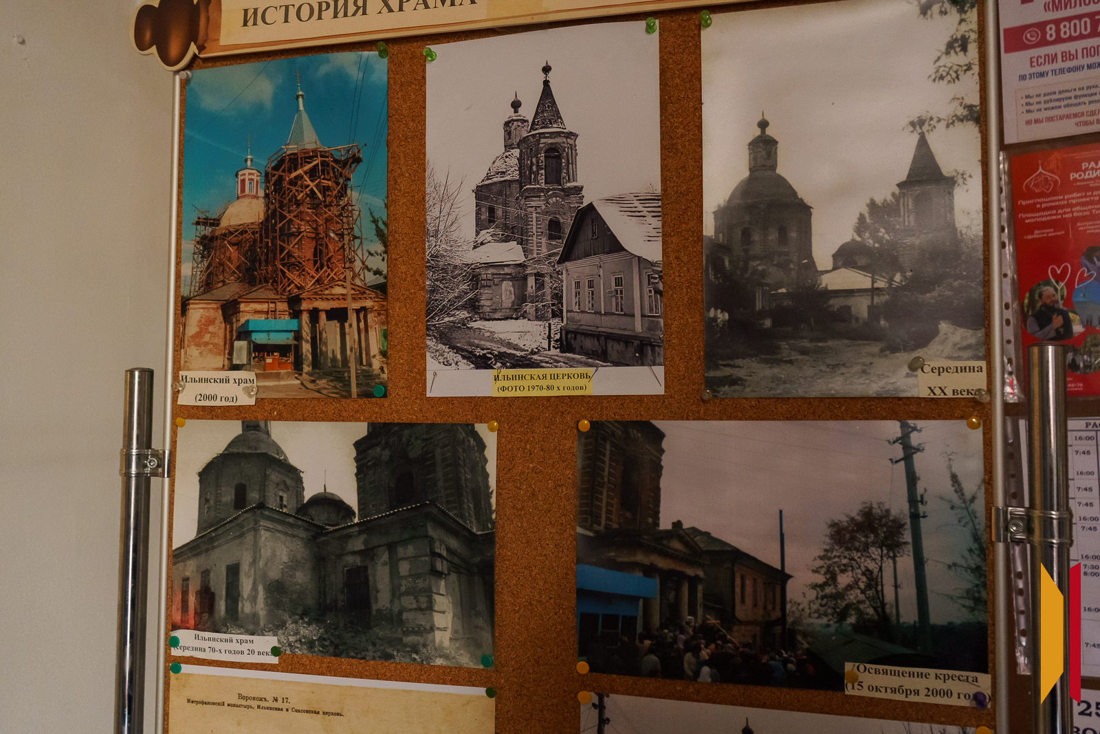 – Старинные росписи мы попытались отмыть, с реставрацией не получилось – просто отваливалась штукатурка. Иконы были страшные, все поцарапанные, как будто над ними издевались. Некоторым святым выцарапали глаза, в частности это относится к изображению пророка Илии. Когда мы отмыли его икону, на ней было написано неприличное слово, – вспоминает батюшка.