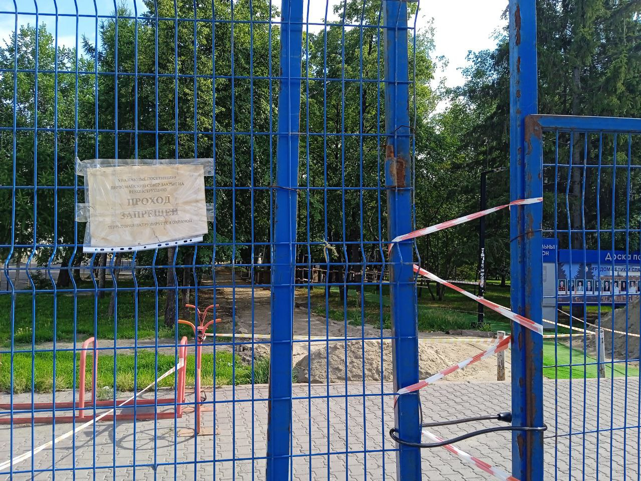 В Первомайском сквере закрылось последнее работавшее посреди ремонта заведение общепита: проход через забор, в который входили клиенты заведения Sabai bar, закрыли.