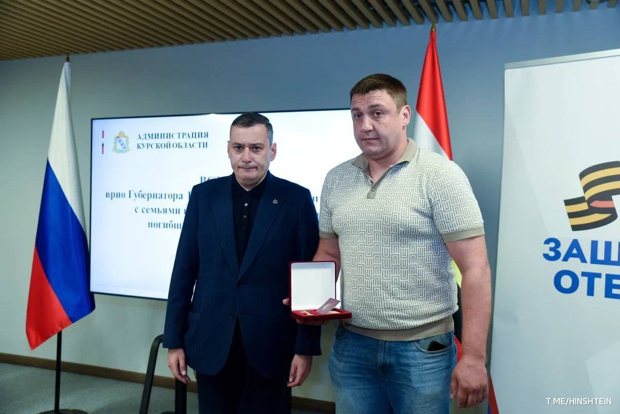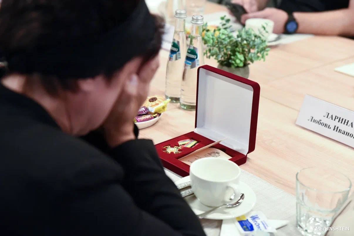 Александр Хинштейн вручил наградные знаки "За верность долгу и мужество" родственникам погибших во время атаки ВСУ на пляж в Курской области в ночь с 8 на 9 июля.