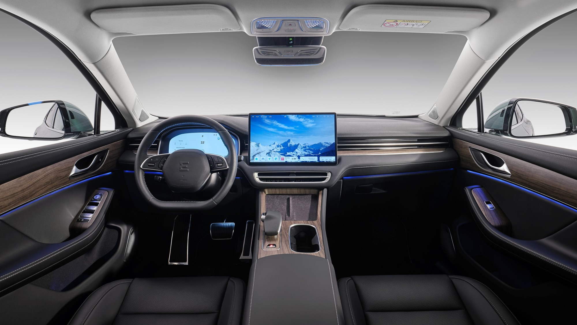 Салон Evolute i-Jet отделан экокожей и вставками под дерево, приборный экран — 12,3-дюймовый, мультимедийный — 15,6-дюймовый, приборный экран дополнен проектором оперативных показаний на лобовое стекло. Комплектация пока единственная и довольно богатая, в неё входят 6 подушек безопасности, различные электронные ассистенты водителя (в том числе адаптивный круиз-контроль), двухзонный климат-контроль, передние кресла с электроприводом регулировок и прочими удобствами (подогрев, вентиляция, массаж), аудиосистема с 11 громкоговорителями, видеорегистратор, 40-ваттная беспроводная зарядка для двух смартфонов, камеры кругового обзора, электропривод багажной двери, панорамная стеклянная крыша и многое другое.
