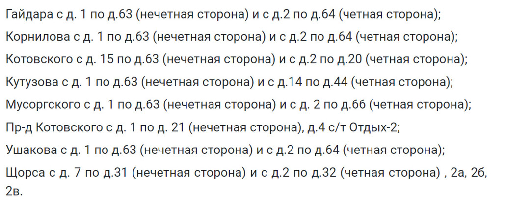 С 9:30 до 17:00 не будет холодной воды по следующим адресам:
