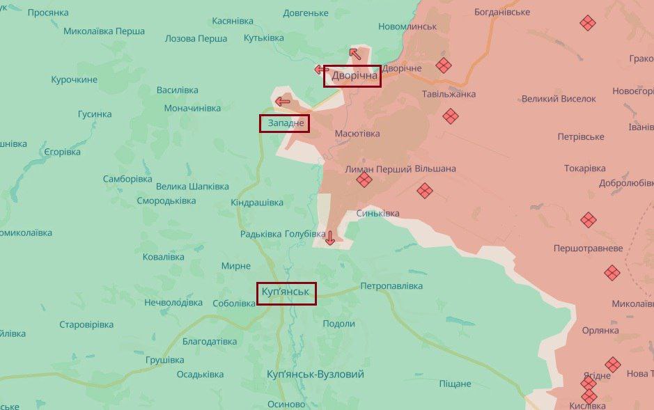 Основной фокус РФ сосредоточен на с. Двухречье, отмечают в отчете. Там продолжаются интенсивные бои. Кроме того, боевые действия продолжаются по с. Западное, расположенное в 4 км к западу от р. Оскол.