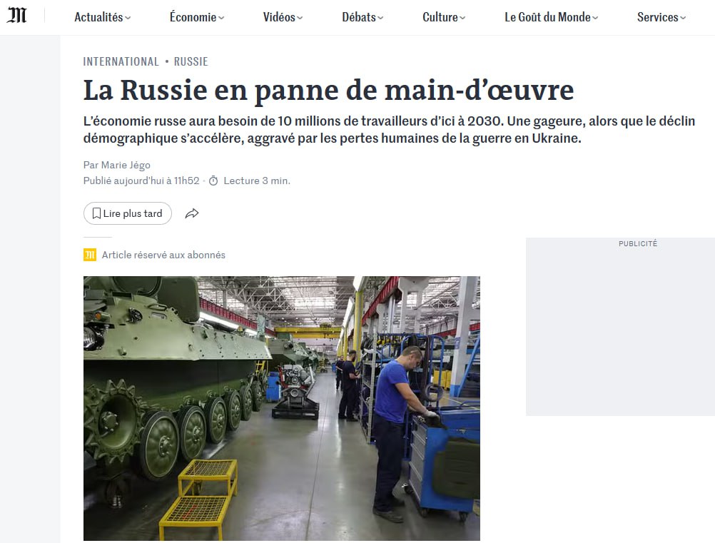 ❗️🇷🇺 России не хватает рабочих рук — Le Monde