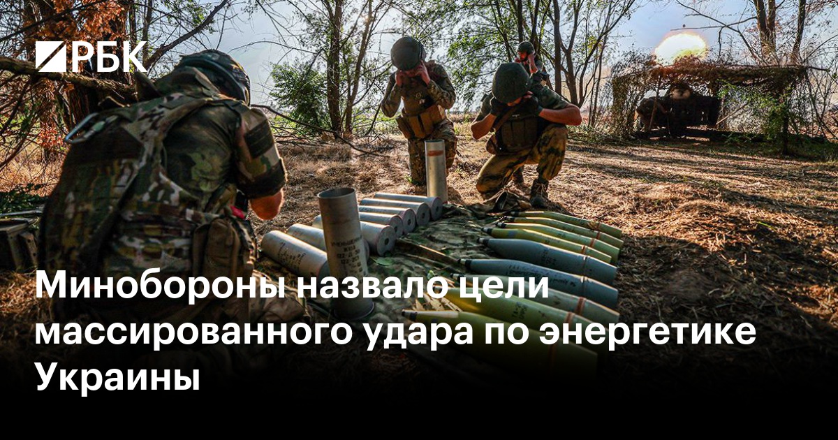Минобороны России перечислило цели массированного удара по объектам энергетической инфраструктуры Украины, «обеспечивавших работу военно-промышленного комплекса».