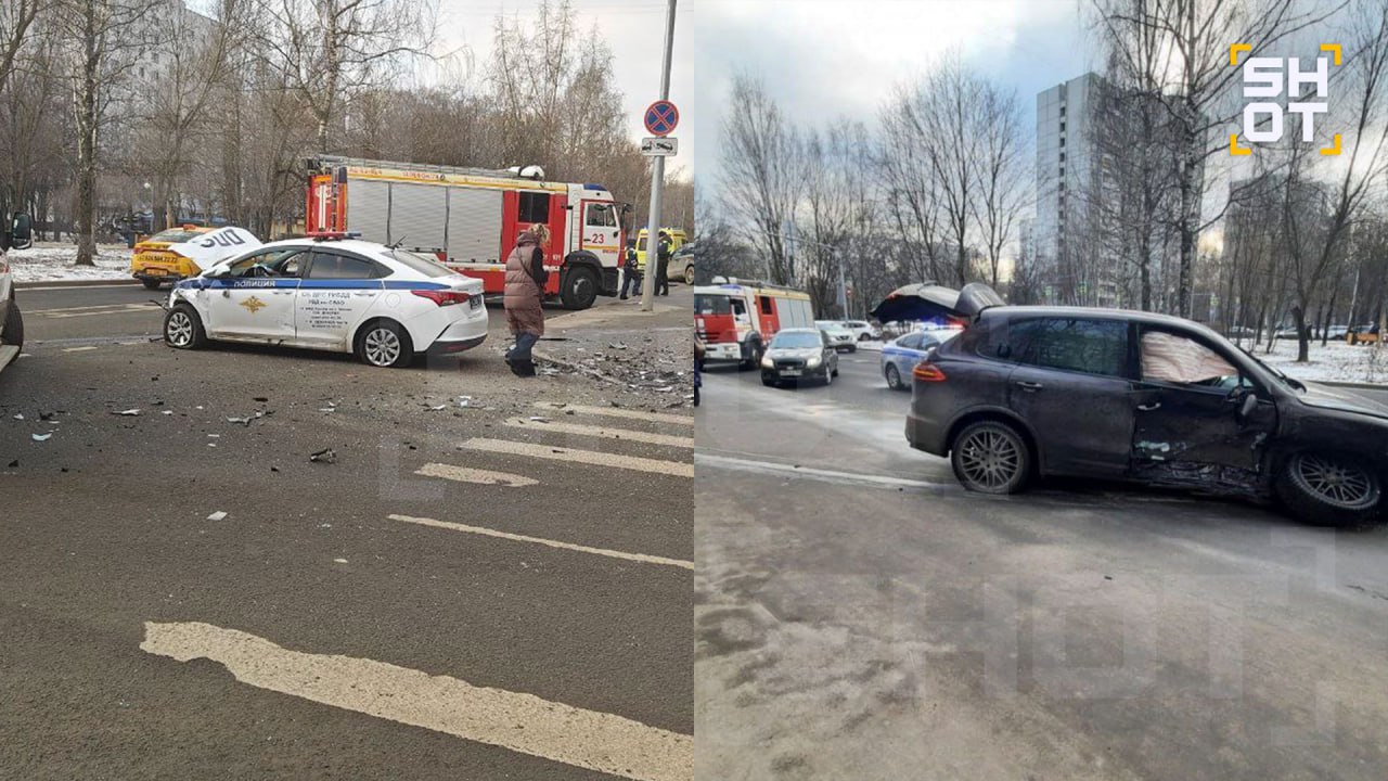 Porsche жены актёра Дениса Матросова столкнулся с полицейской машиной в Москве. Сотрудник ДПС в тяжёлом состоянии.