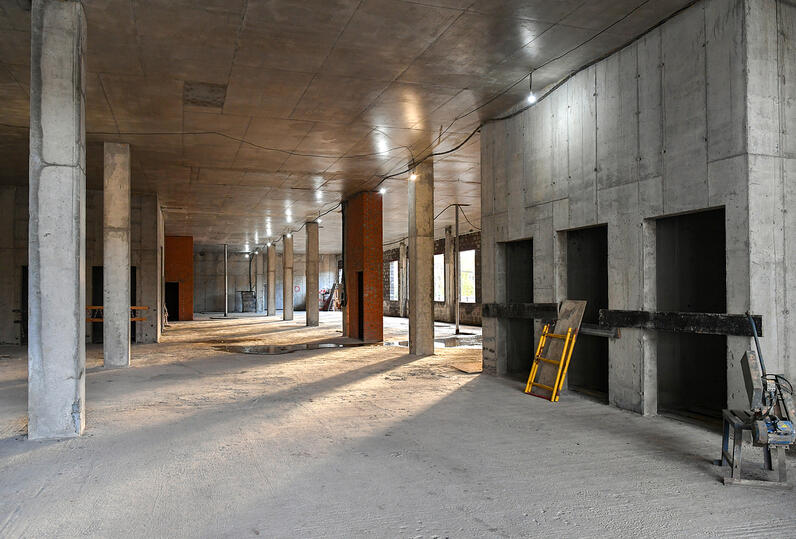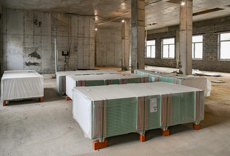 На сегодняшний день в работах задействованы более 200 человек и 15 единиц техники. Строители завершают монолитные в работы. В частности, заканчивается строительство железобетонных каркасов и наружных стен корпусов лечебного учреждения, продолжается укладка внутренних стен, монтируются дверные и оконные блоки, укрепляются стены, устраиваются внутренние инженерные коммуникации и строится теплотрасса.