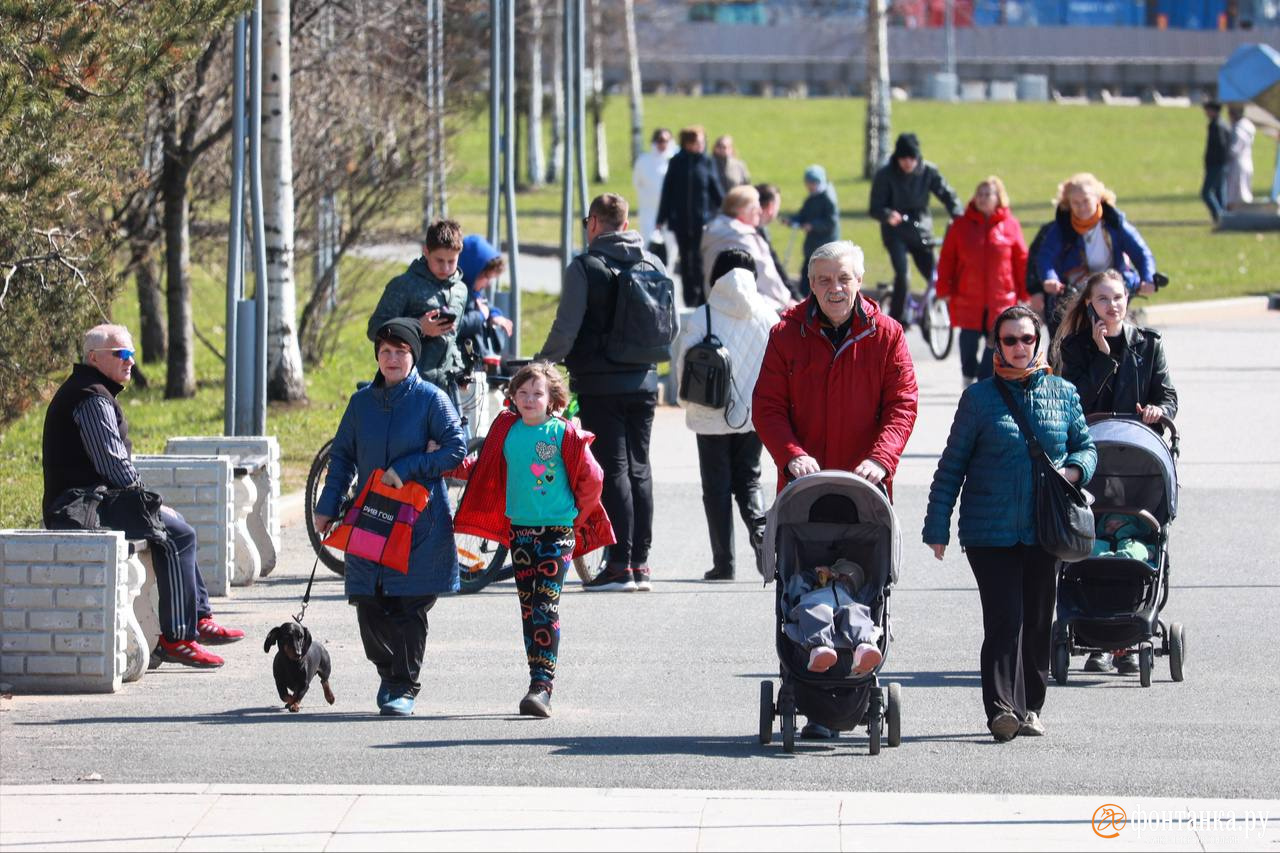 В Петербурге 27 апреля — солнечный ажиотаж. Несмотря на то, что суббота сегодня рабочая, улицы и парки города заполнены людьми. Петербуржцы гуляют с детьми, домашними питомцами, катаются на велосипедах и наслаждаются весной.