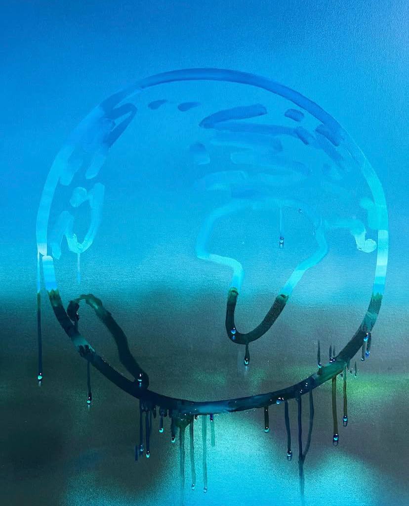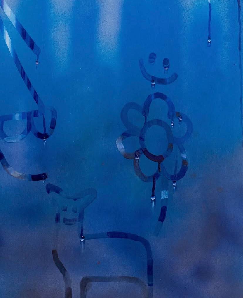 Художник изображает запотевшие окна, на которых видны рисунки, оставленные будто пальцами, на самом деле он использует холст и масло.