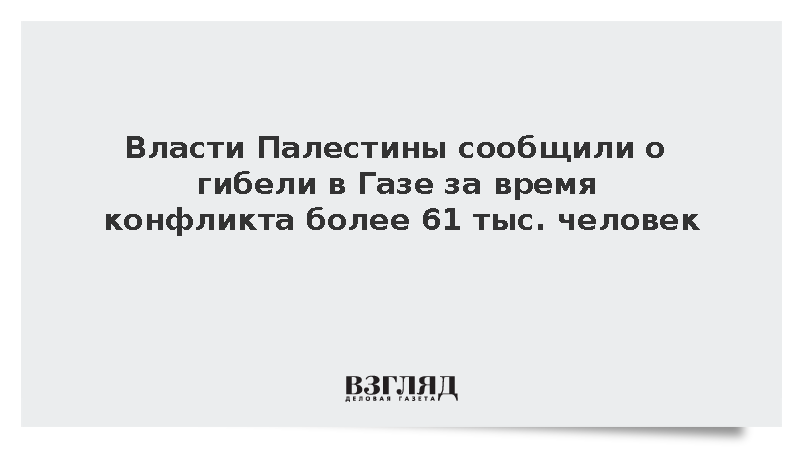 В результате израильской военной операции в секторе Газа, по данным властей Палестины, погибло более 61 тыс. человек, включая 1155 сотрудников здравоохранения и 205 журналистов.