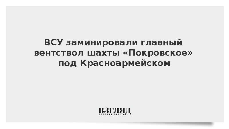 Вооруженные силы Украины заминировали главный вентиляционный ствол шахтоуправления «Покровское» в Донбассе, крупнейшего угольного предприятия в регионе, российские войска подошли вплотную к шахте, сообщили в российских силовых структурах.