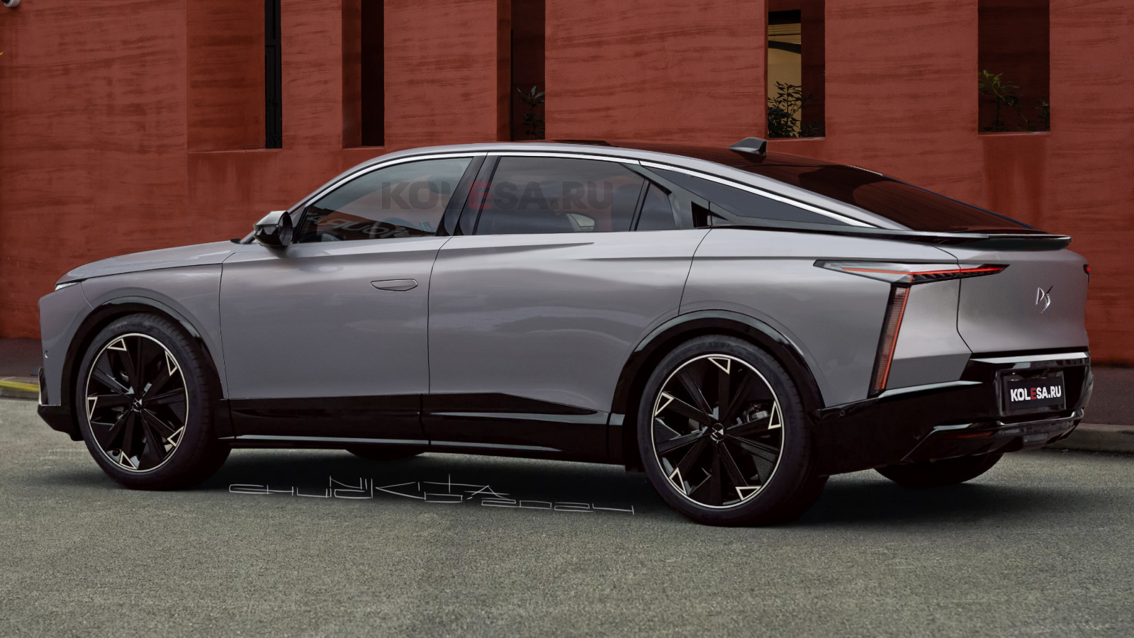 У нас в распоряжении есть несколько официальных фотографий замаскированных прототипов, на которых уже можно разглядеть все основные особенности внешности паркетника. Спереди появятся размашистые Т-образные фары, и стоит отметить, что они не будут «двухэтажными», несмотря на всеобщий тренд последнего времени. Между фарами расположена узкая горизонтальная вставка чёрного цвета, а на месте решётки радиатора — глухая чёрная панель с логотипом марки. Фонари имеют почти такую же форму, как и фары, номерной знак будет расположен на бампере, который выполнен в контрастном чёрном цвете. По пропорциям и форме крыши новинка от DS очень напоминает родственные модели Citroen C5 X и Peugeot 408. При этом пластика боковин здесь оригинальная за счёт нескольких горизонтальных выштамповок. Интересной деталью являются дверные ручки: передние сделаны выдвижными и по форме аналогичны таковым на флагманском седане DS 9, а задние «спрятаны» в стойках дверей. Кроме того, кроссовер получит оригинальные колёсные диски.