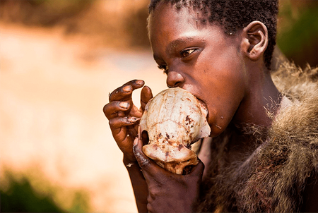 Жизнь аутентичных хадза очень похожа на то, как мы себе представляем быт наших прародителей. Они живут в передвижных лагерях или спят на улице, днем мужчины уходят искать добычу, женщины — съедобные растения; дети тоже живут на подножном корму (рис. 1). У них нет домашних животных и нет денег — всё необходимое они выменивают у соседних племен. Они добывают огонь трением, охотятся с помощью лука, стрел и примитивных топориков, а их орудия напоминают те, что используют современные шимпанзе [2]. Даже живут они всего на 50 километров южнее Олдувайского ущелья — того самого, что дало название культуре обработки камня и где были обнаружены останки людей возрастом 3,6 миллиона лет.