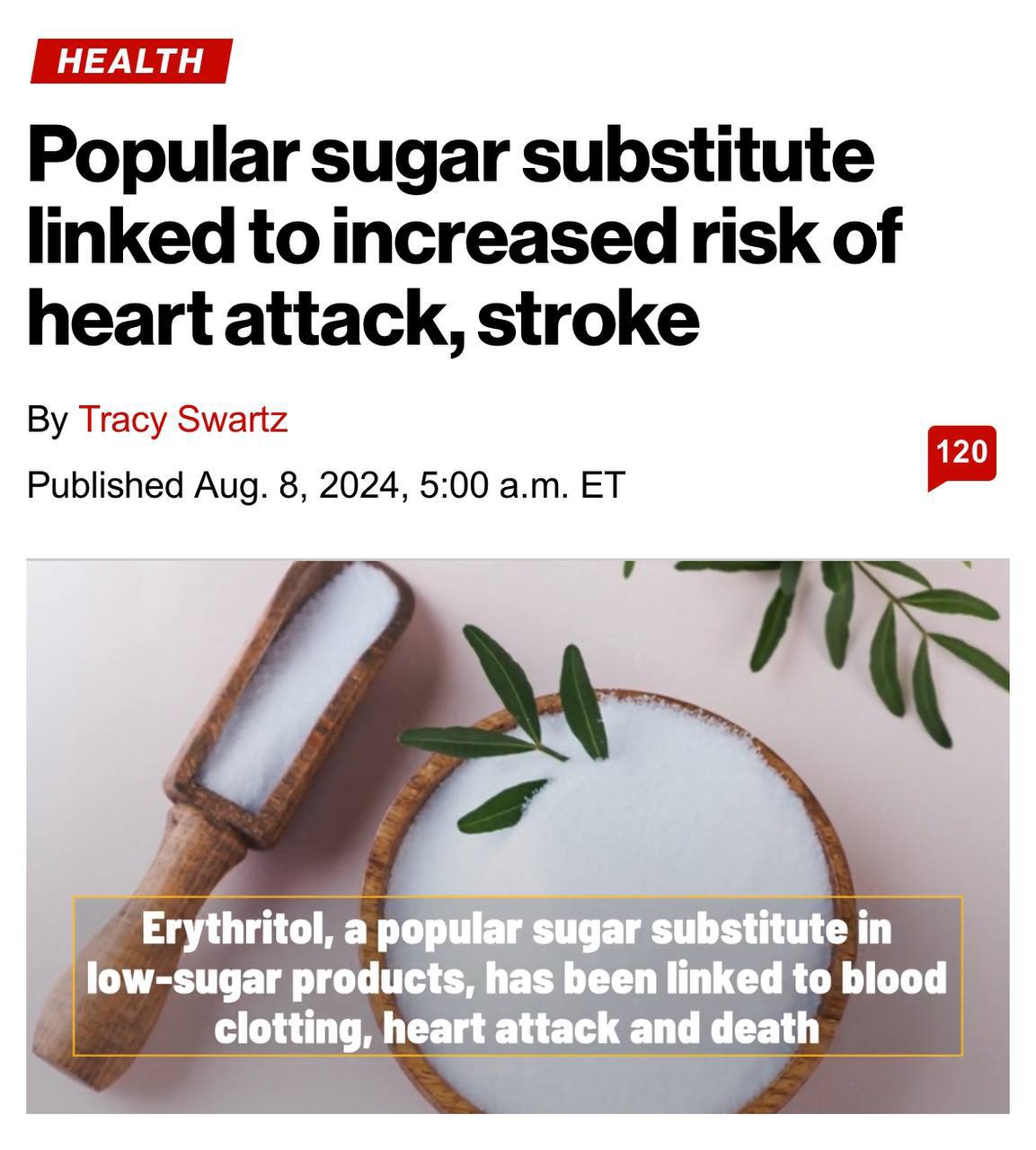 Исследование доказало, что эритрит повышает активность тромбоцитов в крови и может привести образованию тромбов, из-за которых часто умирают люди.