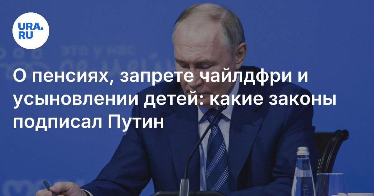 Президент России Владимир Путин 23 ноября пописал ряд важнейших для страны законов. Один — касается участников спецоперации. Он дает военнослужащим право списать просроченные кредиты до 10 млн рублей. Другой — запрещает усыновление российских детей гражданами стран, где разрешена смена пола. Третий — увеличивает срок выплат пенсионных накоплений. Также на официальном уровне в РФ запретили пропаганду идеологии чайлдфри. Подробнее о всех нововведениях — узнаете из материала URA.RU.