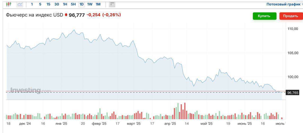 😊Индекс доллара опустился до уровня весны 2022 года.