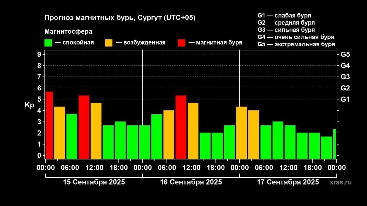Прогноз магнитных бурь в ХМАО на 16 сентября