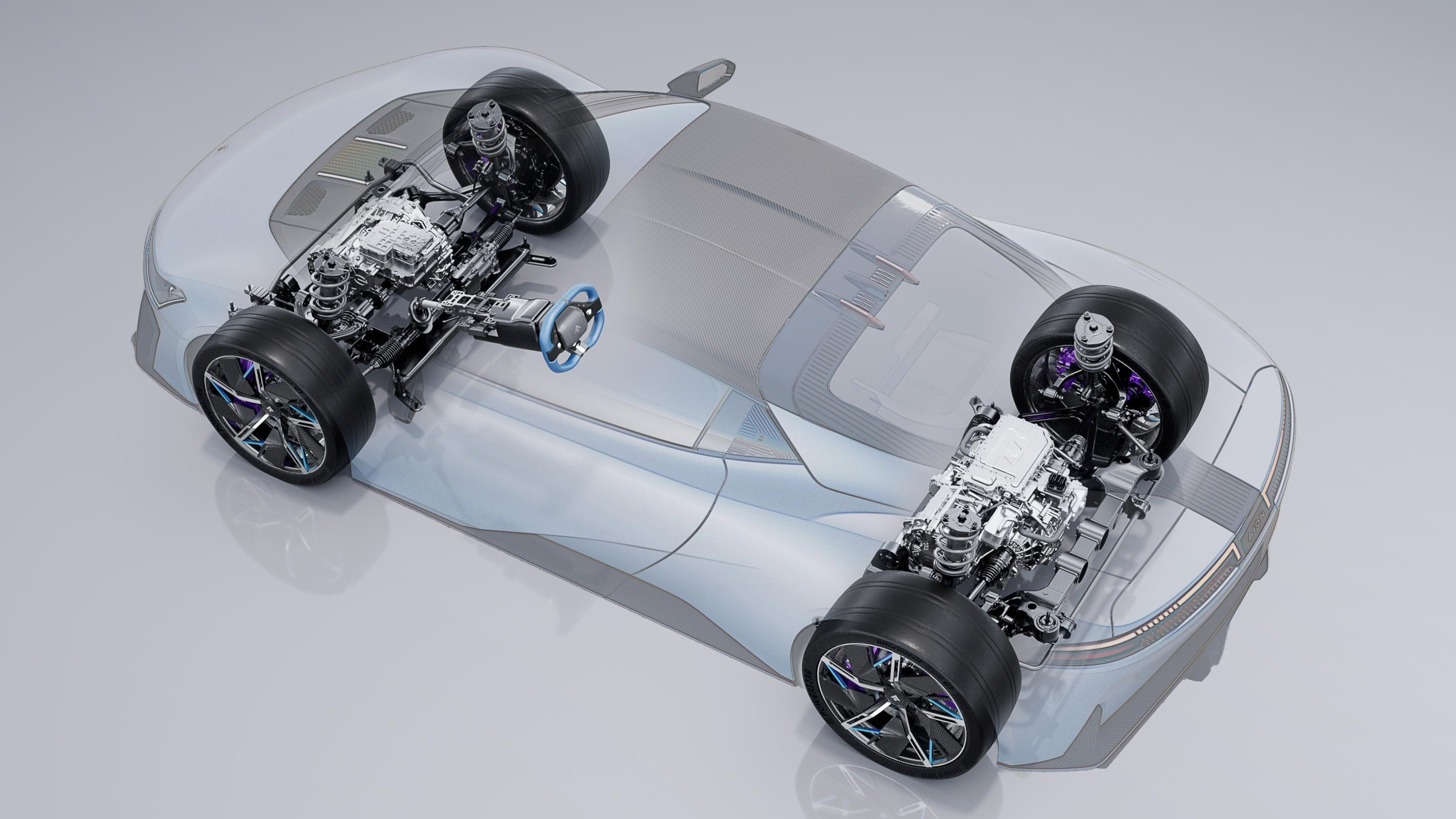 Заявленная жёсткость кузова на кручение составляет 50 475 Нм/градус, это много: для сравнения скажем, что жёсткость кузова на кручение новейшего Lamborghini Revuelto составляет 40 000 Нм/градус, датского суперкара Zenvo Aurora — 63 000 Нм/град. Подвеска у Hyper SSR пружинная, на двойных поперечных рычагах «по кругу», с адаптивными амортизаторами, имеющими несколько режимов работы. Тормоза — карбон-керамические, спереди с шестипоршневыми суппортами, сзади — с четырёхпоршневыми. Размерность передних шин — 245/35 R 20, задних — 305/30 R 20.