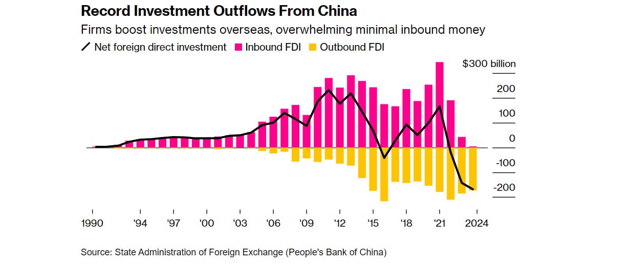 Китайские инвесторы вывели за рубеж $173 млрд, тогда как иностранные компании вложили в страну всего $4,5 млрд — это минимальный показатель с 1992 года.