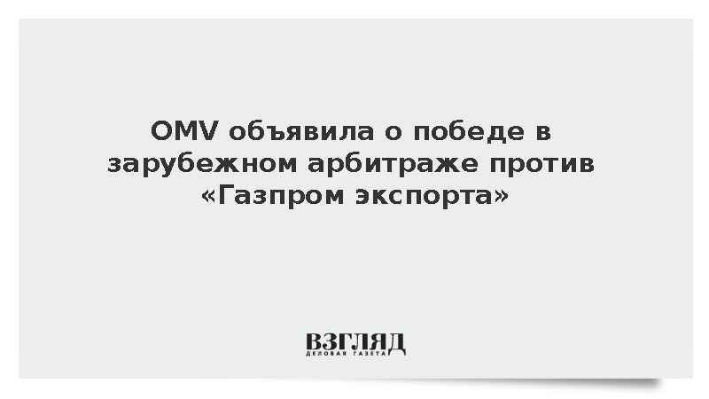 Австрийская компания OMV сообщила, что выиграла зарубежный арбитраж против «Газпром экспорта» на сумму 230 млн евро и предпринимает шаги для немедленного приведения в исполнение арбитражного решения.