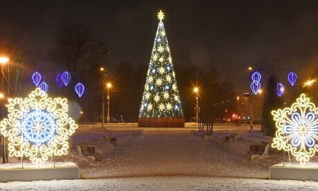На днях подрядчик устанавливал прожекторы на площади Революции и арт-объект в виде лотоса напротив здания городской Думы.