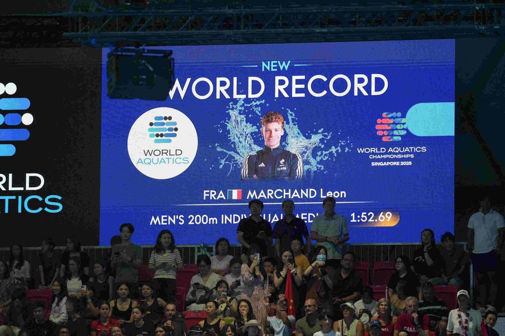 Mondiaux de natation : «choqué», «truc de ouf», «vraiment fière»… les Bleus portés par le record du monde de Léon Marchand
