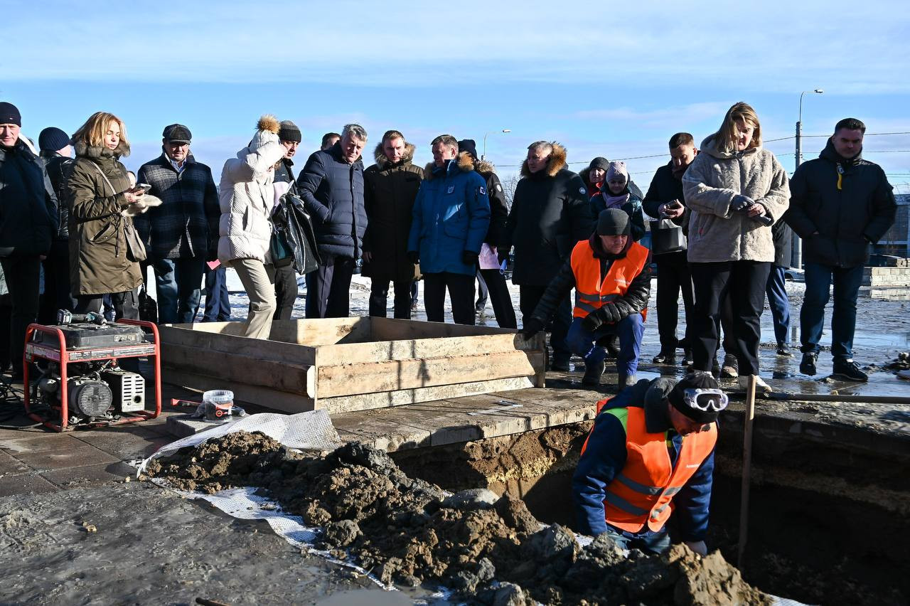 Вице-губернаторы Кирилл Поляков и Сергей Кропачев провели выездное совещание на Невском воинском кладбище у мемориала «Журавли» – они проверили, как продвигается реконструкция монумента.