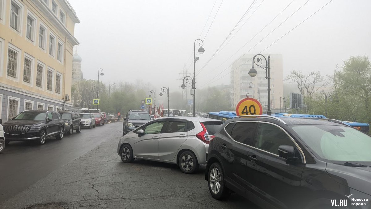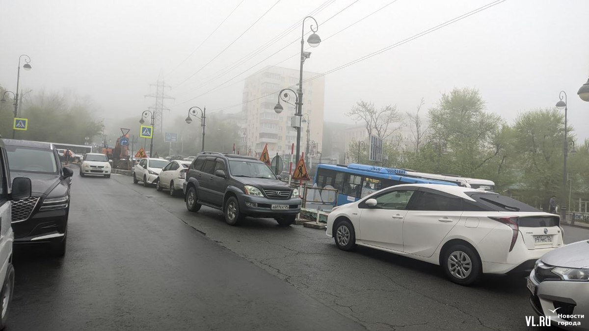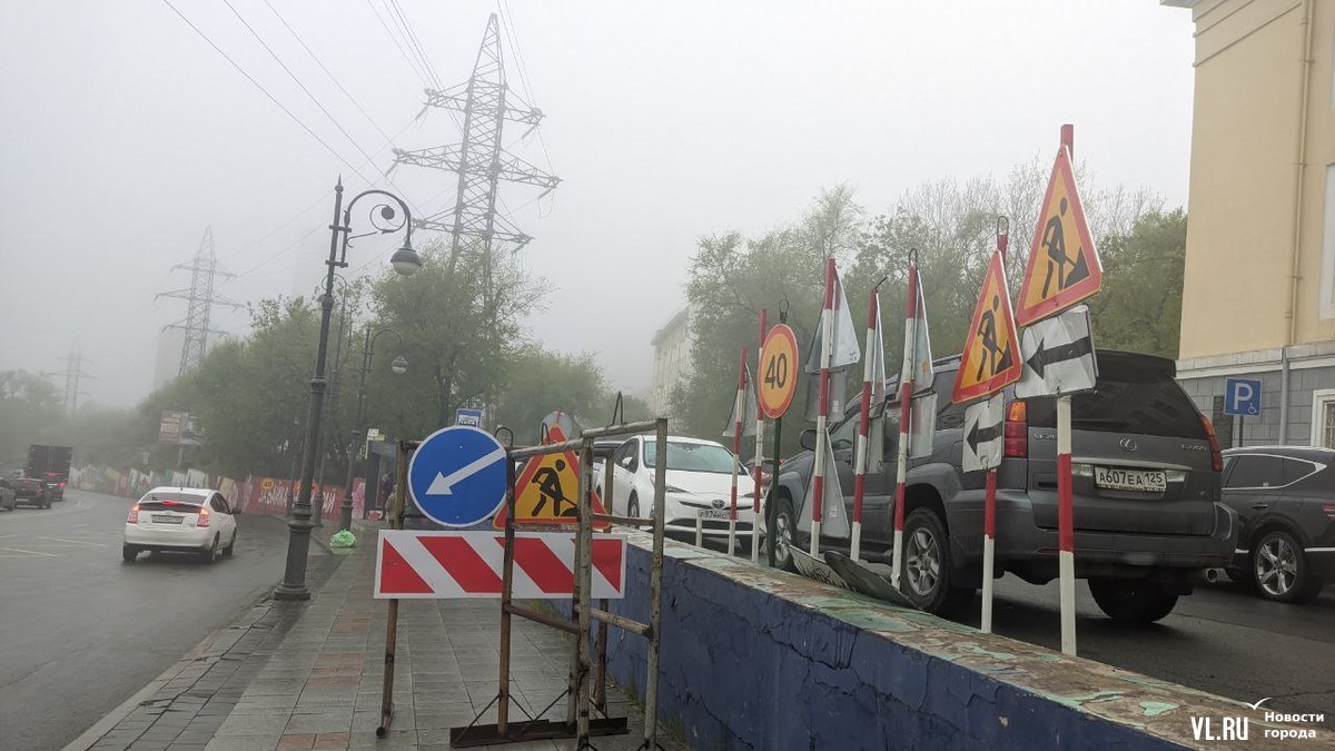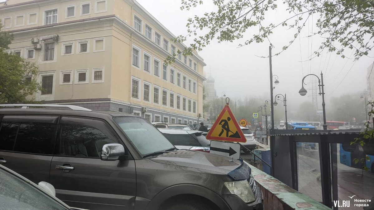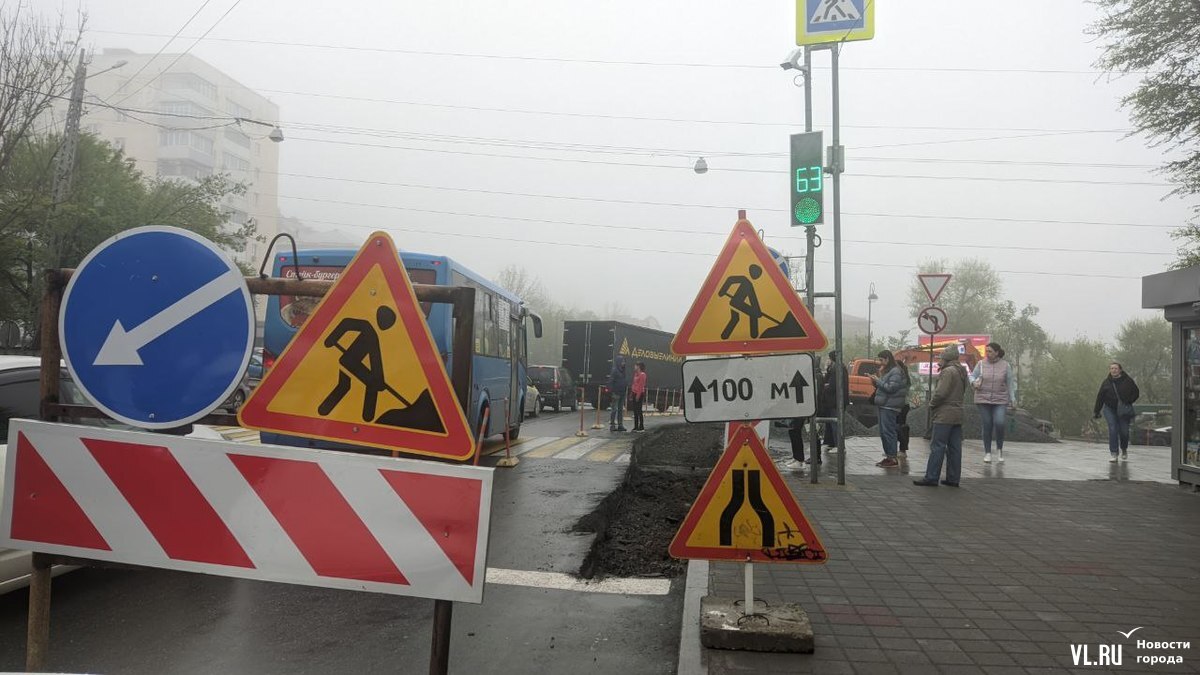 Проезд на Октябрьскую с Океанского проспекта (если ехать от «Дальпресса») сейчас закрыт. Автомобили, которые хотят попасть на улицу, проезжают немного вниз к переулку Павленко, а затем делают крутой поворот направо и поднимаются по дуге вдоль делиниаторов. Из-за масштабных работ на этом оживлённом участке почти в центре города образовались более интенсивные автомобильные заторы, чем обычно.