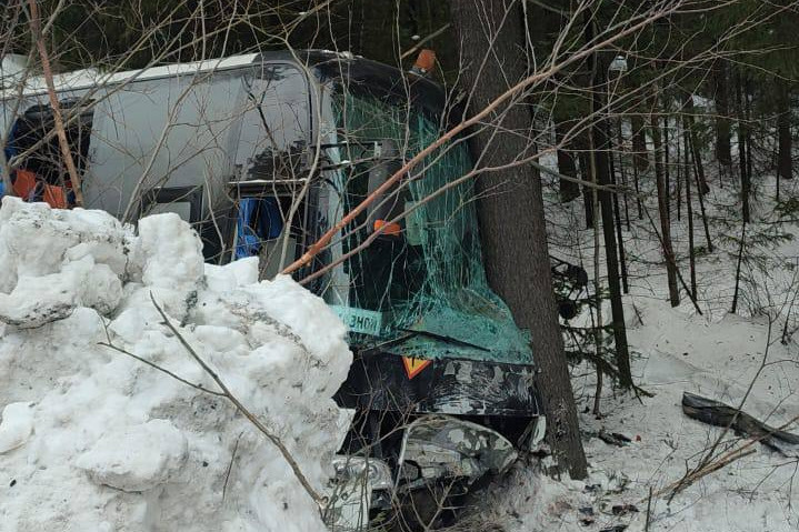 У автобуса лопнуло колесо, из-за этого он выехал на встречную полосу, рассказали в хоккейной школе Новоуральска. По словам очевидца, автобус тащил легковушку метров пятьдесят, в ней погибли все людей, «там просто фарш».