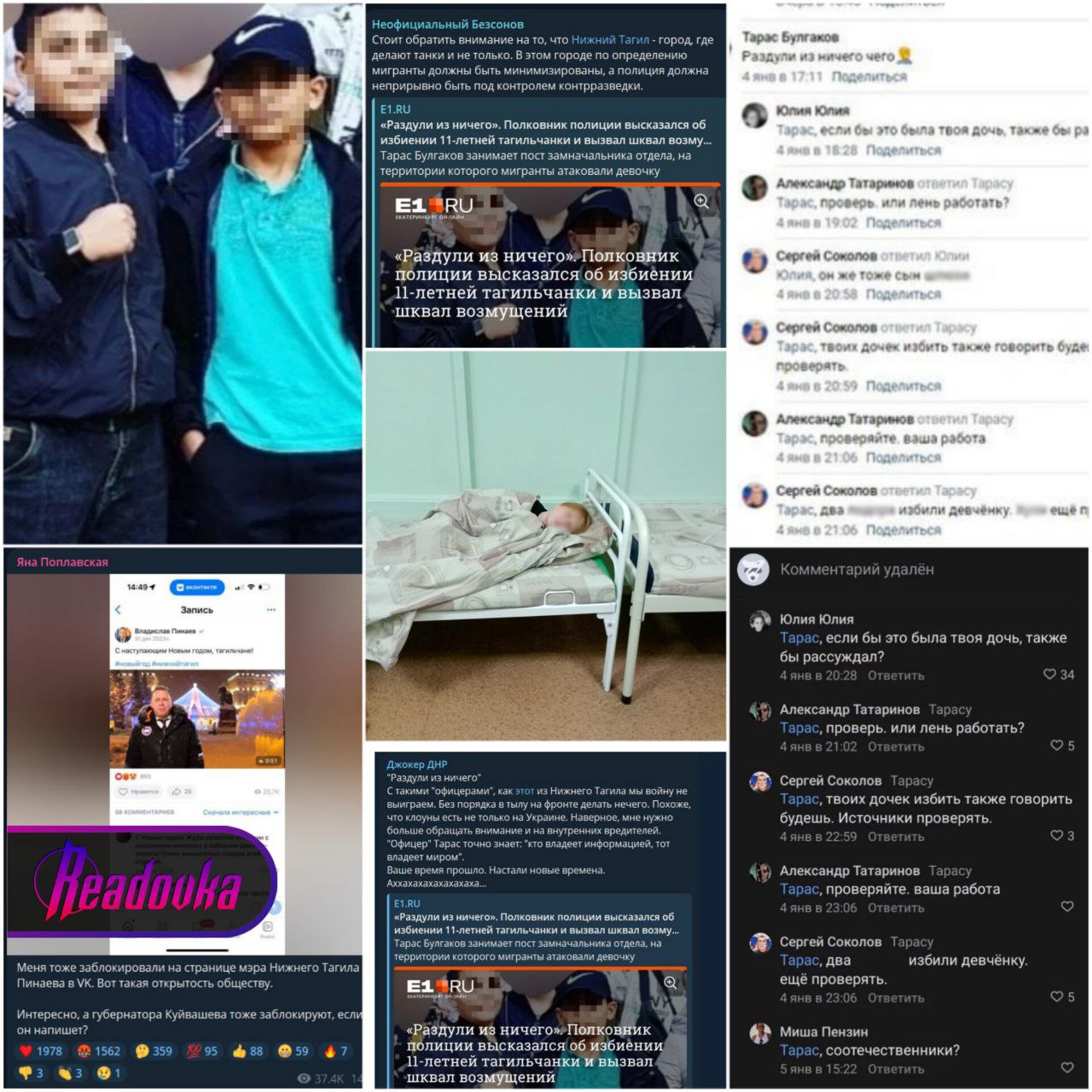 Новый скандал с детьми мигрантов вспыхнул после избиения девочки-сироты в Нижнем Тагиле — местные полицейские и чиновники начали обелять обидчиков, чем вызвали праведный гнев общественности Избиение двумя взрослыми «лбами» девочки-сироты в Нижнем Тагиле неожиданно вылилось в неприкрытую защиту несовершеннолетних мигрантов и их матери, снимавшей все на камеру. Причем защита эта последовала не от кого-нибудь, а от местной полиции и чиновников. Так, полковник Тарас Булгаков после того, как Александр Бастрыкин поставил на контроль расследование обстоятельств произошедшего, написал под новостью об избиении комментарий, что конфликт был «раздут из ничего», чем вызвал всенародное негодование, после которого трусливо удалил коммент. Глава пресс-службы МВД по Свердловской области Валерий Горелых тоже отличился тем, что рассказал полную биографию почему-то именно потерпевшей и ее семьи вопреки сразу нескольким подпунктам и пунктам ст. 137 УК РФ. А депутат нижнетагильской Думы, он же сын начальника полиции города Гаджи Абдулов, только после вспыхнувшего скандала решил высказаться о ситуации, заявив, что надо бы во всем разобраться. На деле же, как предполагают в сети, он лишь пытался сохранить свою репутацию, когда она начала терпеть фиаско после его продолжительного молчания на фоне общественного резонанса. Видимо, надеявшиеся проигнорировать скандальное происшествие и спустить все на тормозах не ожидали, что за сиротку активно вступятся не только местные жители, но и депутаты, журналисты, блогеры и общественные деятели. Не могли они предугадать и того, что весть о случившемся дойдет до Госдумы. По классике жанра, только после широкой огласки дело сдвинулось с мертвой точки. Сейчас девочка выписана из больницы, а ее обидчиков, которые далеко не в первый раз избивают сверстников, поставили на учет в ПНД. Кроме того, на родителей завели административные дела. Но будут ли наказаны сами блюстители правопорядка, пытавшиеся закрыть глаза на творящееся под их носом беззаконие, — вопрос открытый.