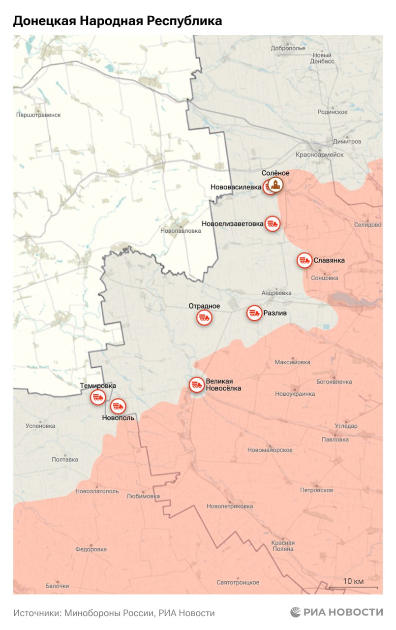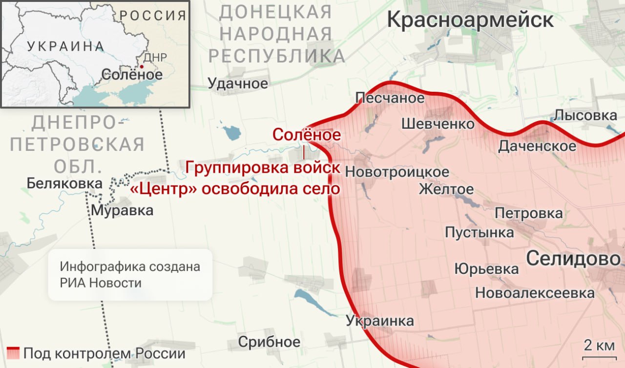 ▪️ Российские войска освободили населенный пункт Соленое в ДНР, сообщило Минобороны.
