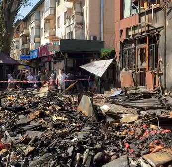 "По прибытию было установлено, что загорелся грузовик Mercedes-Benz на площади 10 квадратных метров и девять уличных торговых бутиков на площади 45 квадратных метров",- отметили в акимате.