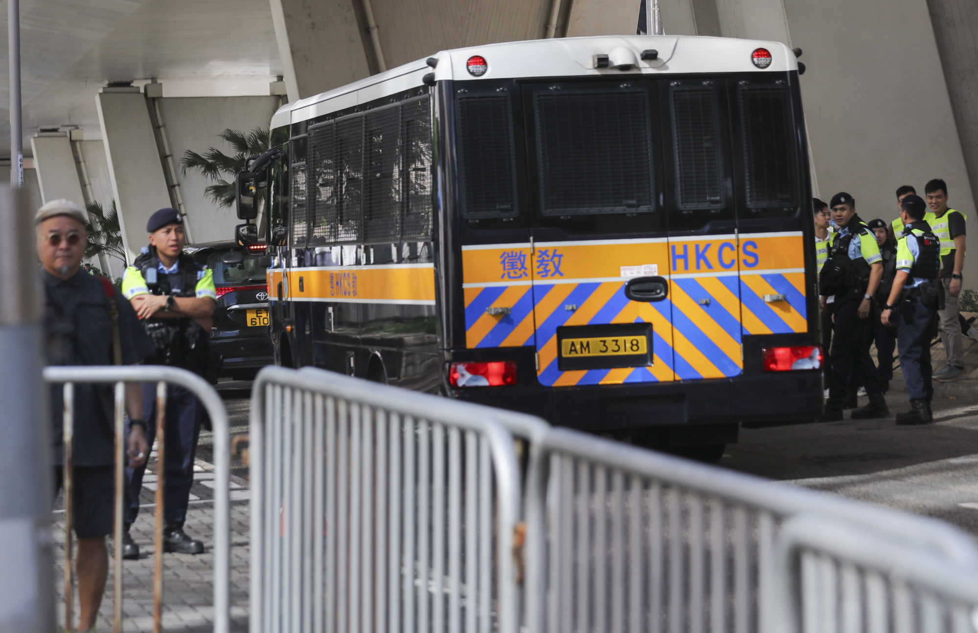 A prison van arrives at West Kowloon Magistrates Court on the day of mitigation proceedings in the largest national security trial of nine defendants Photo: Xiaomei Chen