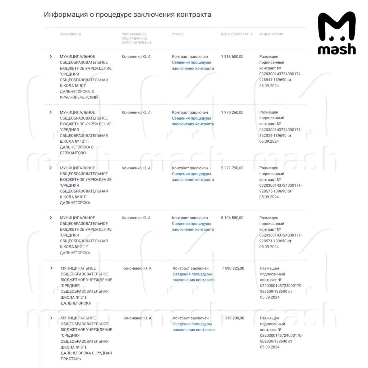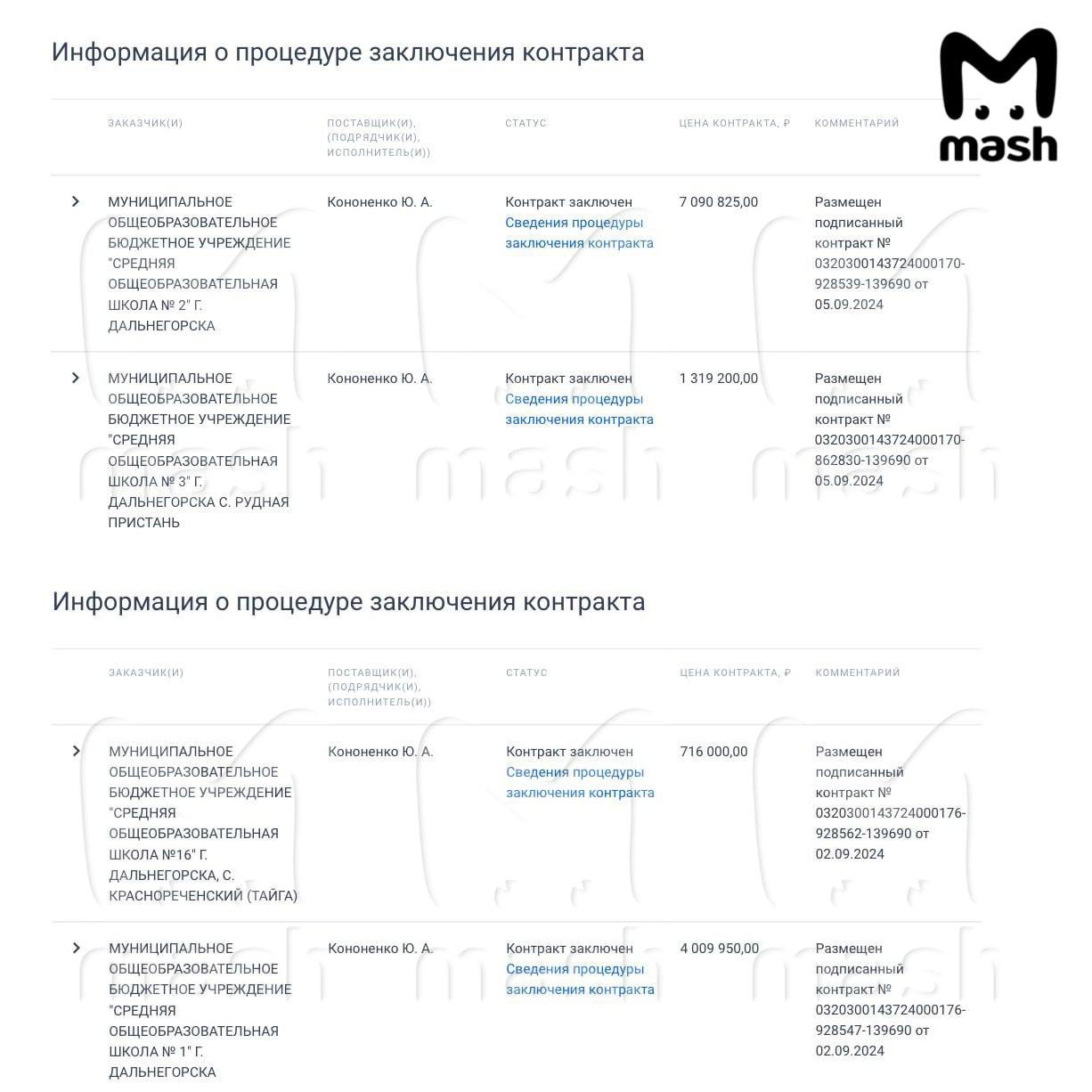 Находясь под следствием, Кононенко выиграл тендер от администрации и заключил четыре госконтракта на сумму 43 ляма рублей — чтобы кормить 11 местных школ: №№ 1, 2, 3, 5, 7, 8, 12, 16, 17, 21, 25. Первые случаи заражения появились в 17-й школе. Руководство которой, кстати, раньше других заключило повторный контракт на поставку питания.