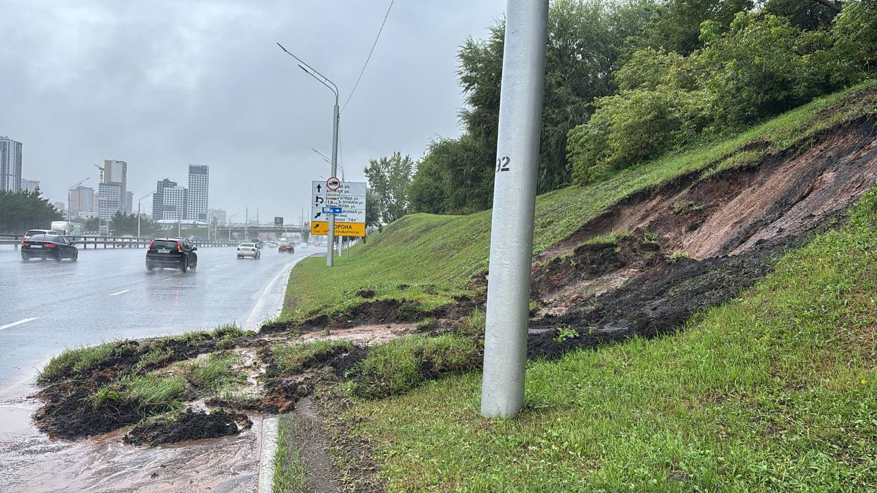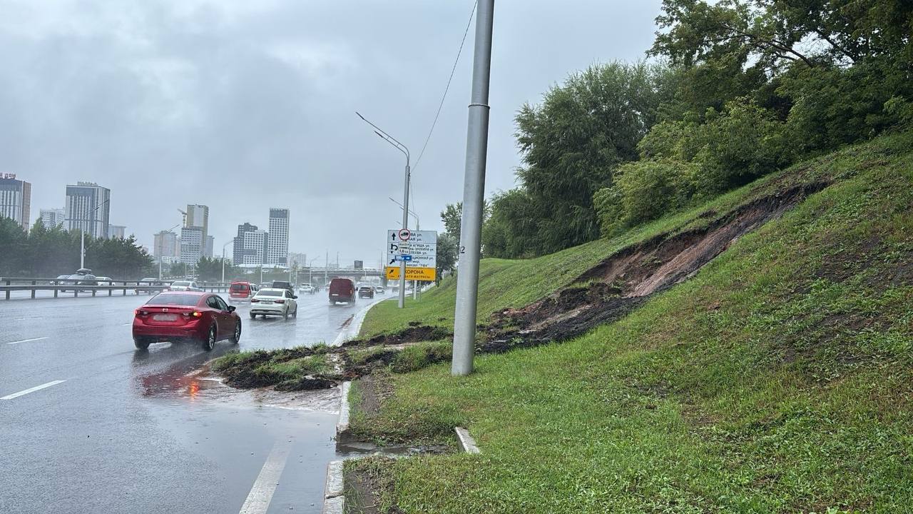 В ЕДДС г. Уфы поступило множество сообщений о последствиях ливня. В Советском районе в результате схода земли перекрыто движение по одной полосе движения по пр. С. Юлаева в сторону центра.