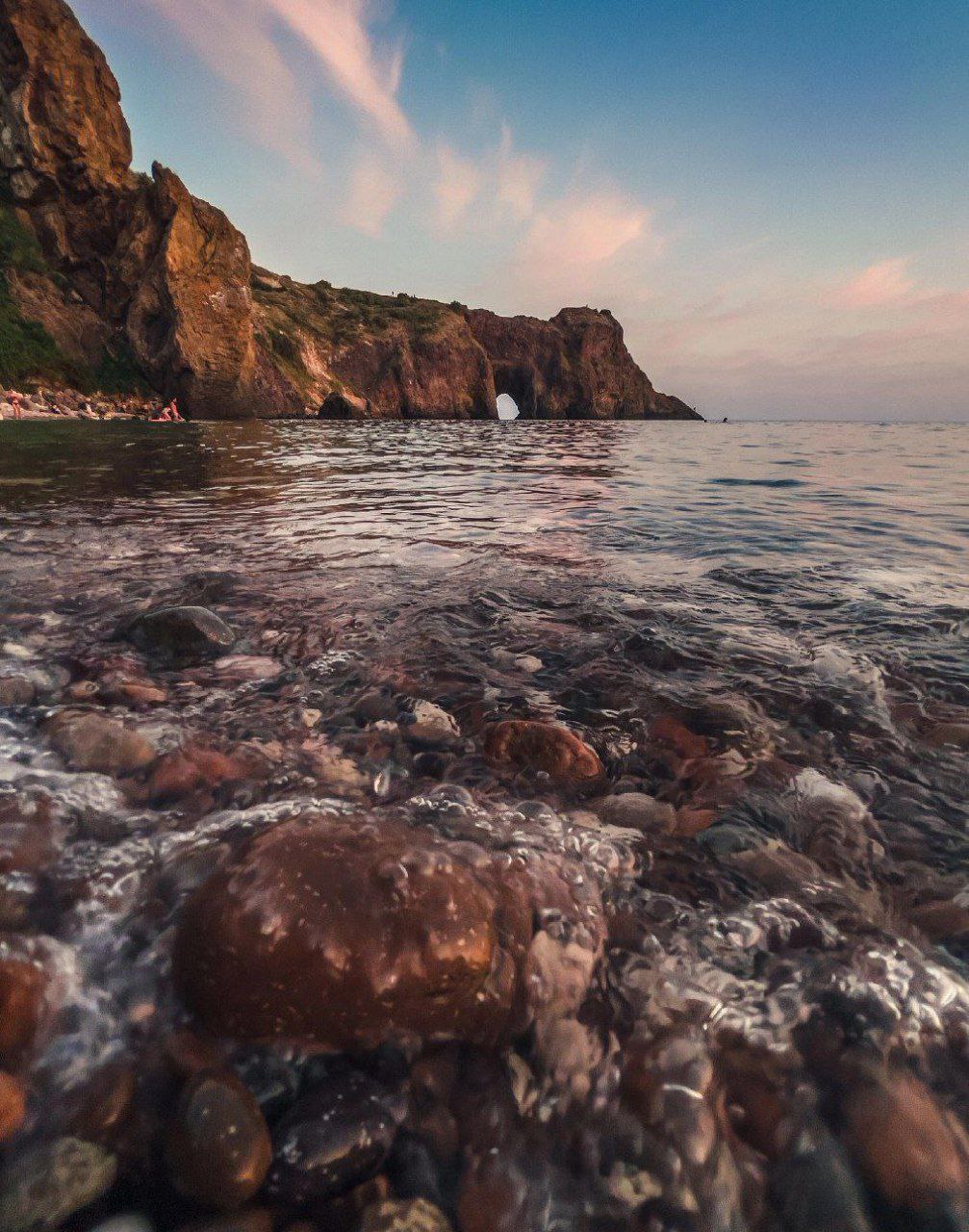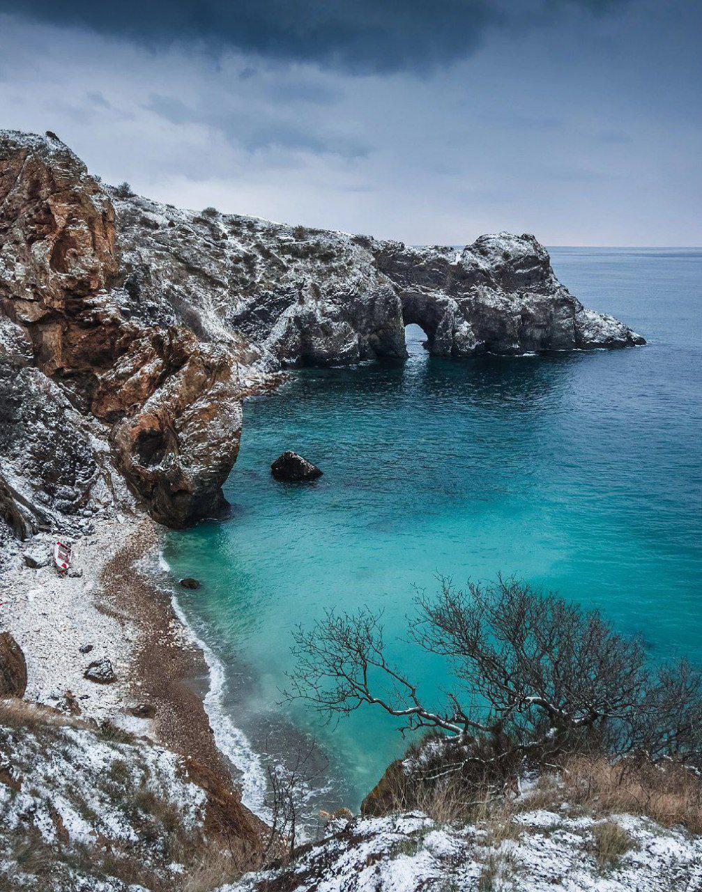 Грот Дианы на Фиоленте в Севастополе — это место, которое очаровывает в любое время года. Здесь вас ждёт маленький уютный пляж, который исчезает во время сильных штормов. К пляжу ведёт спуск из 450 ступеней, и по пути вы можете отдохнуть на скамейке в тени деревьев.